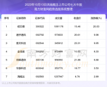 截止2023年10月13日,个股表现方面,天线概念上市公司当日领涨股为硕贝德(300322),该股当日报收15.46,上涨20.03%,成交量109.12万。通宇通讯(002792)以上涨9.98%紧随其后,该股当日成交量57.3...