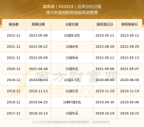 一、富森美(002818)股票分红记录 富森美最新一次公布的分红方案:10派6.8元。 本次权益分派股权登记日为2023年5月11日,除权除息日为2023年5月12日,派息日为2023年5月12日。 ...