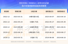 一、世纪天鸿(300654)股票分红记录 世纪天鸿最新一次公布的分红方案为10转7派0.8元。本次权益分派股权登记日为2023年4月7日,除权除息日为2023年4月10日,派息日为2023年4月10日。 ...
