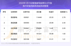 截止2024年1月15日,个股表现方面,智慧家电股票当日领涨股为海信家电(000921),该股当日报收23.33,上涨2.78%,成交量11.44万。海信视像(600060)以上涨2.40%紧随其后,该股当日成交量6.15万。此...