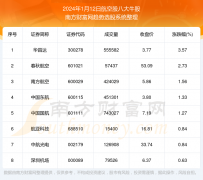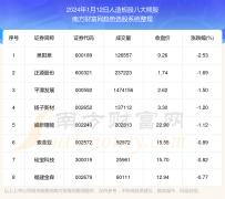 截止2024年1月12日,个股表现方面,航空股当日领涨股为华昌达(300278),该股当日报收3.77,上涨3.57%,成交量55.56万。春秋航空(601021)以上涨2.73%紧随其后,该股当日成交量5.74万。此外,南方...