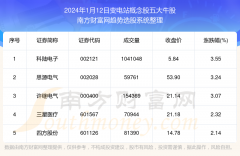截止2024年1月12日,个股表现方面,变电站概念股当日领涨股为科陆电子(002121),该股当日报收5.84,上涨3.55%,成交量104.1万。思源电气(002028)以上涨3.24%紧随其后,该股当日成交量5.98万。此...