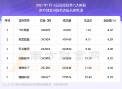 截止2024年1月12日,个股表现方面,百度股票当日领跌股为*ST美盛(002699),该股当日报收1.24,上涨-4.62%,成交量4万。天音控股(000829)以下跌-4.25%紧随其后,该股当日成交量40.55万。此外,天龙...