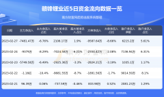 一文了解,丽江股份股票资金流向统计表(02月28日),下文就随笔记君来简单的了解一下吧。 一、近5日资金流向统计(2023/02/22~2023/02/28): 近5日内该股资金总体呈流入状态...