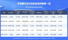 宁波银行(002142)1月4日开报32.45元,截至15时,该股报33.480元涨4%,全日成交12.66亿元,换手率达0.58%。 1月4日该股主力净流入1.55亿元,超大单净流入8537.59万元,大单净流入6957.34万元...
