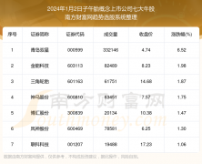 截止2024年1月2日,个股表现方面,盐概念股当日领涨股为西部矿业(601168),该股当日报收14.72,上涨3.15%,成交量38.44万。北方铜业(000737)以上涨1.72%紧随其后,该股当日成交量12.49万。此外,...