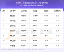 截止2024年1月2日,个股表现方面,包装材料上市公司当日领跌股为恩捷股份(002812),该股当日报收54.87,上涨-3.43%,成交量12.5万。润泽科技(300442)以下跌-3.27%紧随其后,该股当日成交量7.84万...