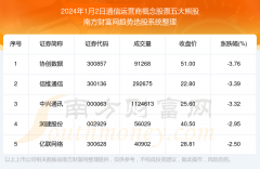 截止2024年1月2日,个股表现方面,通信运营商概念股票当日领跌股为协创数据(300857),该股当日报收51.00,上涨-3.76%,成交量9.13万。信维通信(300136)以下跌-3.39%紧随其后,该股当日成交量2...