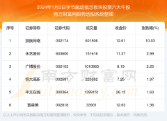 截止2024年1月2日,个股表现方面,乳业奶粉板块股票当日领涨股为一鸣食品(605179),该股当日报收15.64,上涨5.68%,成交量27.13万。庄园牧场(002910)以上涨2.47%紧随其后,该股当日成交量3.43万...