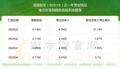 一、海星股份(603115)股票营收情况 海星股份(603115)发布2023年第三季度财报。2023年第三季度海星股份实现营业收入4.54亿元,同比增加21.19元%,环比增加-1.99%;净利润为3416.86万元,...