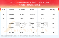 截止2023年12月29日,个股表现方面,核酸检测试剂盒概念上市公司当日领涨股为万泰生物(603392),该股当日报收75.13,上涨10.00%,成交量32.49万。华嵘控股(600421)以上涨5.50%紧随其后,该股当日...