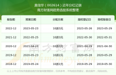 一、奥佳华(002614)股票分红记录 奥佳华最新一次公布的分红方案为10派3元。本次权益分派股权登记日为2023年5月26日,除权除息日为2023年5月29日,派息日为2023年5月29日。 近年...