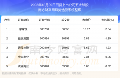 截止2023年12月29日,个股表现方面,百货上市公司当日领跌股为家家悦(603708),该股当日报收13.07,上涨-2.54%,成交量5.66万。益民集团(600824)以下跌-1.29%紧随其后,该股当日成交量9.09万。此...