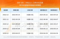 一、佳讯飞鸿(300213)股票分红记录 佳讯飞鸿最新一次公布的分红方案:10派0.5元。 本次权益分派股权登记日为2023年5月22日,除权除息日为2023年5月23日,派息日为2023年5月23日。...