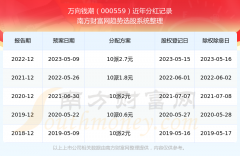 一、万向钱潮(000559)股票分红记录 万向钱潮最新一次公布的分红方案:10派2.7元。 本次权益分派股权登记日为2023年5月15日,除权除息日为2023年5月16日,派息日为2023年5月16日。...