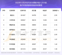 截止2023年12月29日,个股表现方面,汽车车辆配件股当日领涨股为德迈仕(301007),该股当日报收16.91,上涨2.55%,成交量5.48万。川环科技(300547)以上涨2.49%紧随其后,该股当日成交量3.64万。此...