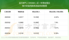 一、蓝天燃气(605368)股票营收情况 蓝天燃气2023年第三季度公司实现营业收入10.03亿元,同比-2.24%;归母净利润1.63亿元,同比-0.2%。 蓝天燃气股票近一年营收情况如下表: ...