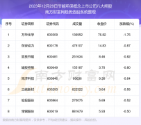 截止2023年12月29日,个股表现方面,节能环保概念上市公司当日领跌股为万华化学(600309),该股当日报收76.82,上涨-1.76%,成交量13.7万。东安动力(600178)以下跌-0.87%紧随其后,该股当日成交量...