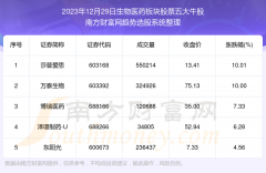 截止2023年12月29日,个股表现方面,生物医药板块股票当日领涨股为莎普爱思(603168),该股当日报收13.41,上涨10.01%,成交量55.02万。万泰生物(603392)以上涨10.00%紧随其后,该股当日成交量3...