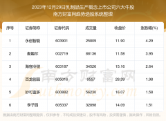 截止2023年12月29日,个股表现方面,百货O2O股当日领跌股为琏升科技(300051),该股当日报收11.31,上涨-2.84%,成交量9.71万。家家悦(603708)以下跌-2.54%紧随其后,该股当日成交量5.66万。此外,...