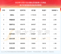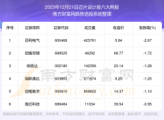 截止2023年12月21日,个股表现方面,芯片设计股当日领跌股为百利电气(600468),该股当日报收5.84,上涨-2.67%,成交量42.38万。佰维存储(688525)以下跌-1.72%紧随其后,该股当日成交量4.63万。此...
