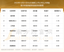 截止2023年12月21日,个股表现方面,OLED面板上市公司当日领跌股为奥来德(688378),该股当日报收45.38,上涨-1.37%,成交量1.15万。和辉光电-U(688538)以下跌-1.19%紧随其后,该股当日成交量33.2万...