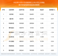 截止2023年12月21日,个股表现方面,民族品牌板块股票当日领涨股为中科云网(002306),该股当日报收4.46,上涨10.12%,成交量76.89万。银宝山新(002786)以上涨5.89%紧随其后,该股当日成交量160...