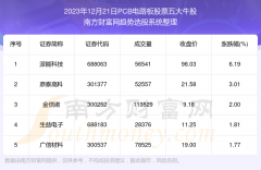 截止2023年12月21日,个股表现方面,PCB电路板股票当日领涨股为派能科技(688063),该股当日报收98.03,上涨6.19%,成交量5.65万。鼎泰高科(301377)以上涨3.01%紧随其后,该股当日成交量5.26万。此...