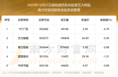 截止2023年12月21日,个股表现方面,经纪业务股票当日领跌股为*ST泛海(000046),该股当日报收0.46,上涨-4.17%,成交量2.63万。*ST明诚(600136)以下跌-3.59%紧随其后,该股当日成交量11.04万。此外...