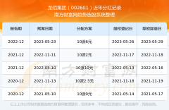 一、龙佰集团(002601)股票分红记录 龙佰集团最新一次公布的分红方案为10派6元。本次权益分派股权登记日为2023年5月26日,除权除息日为2023年5月29日,派息日为2023年5月29日。 ...