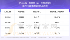 一、航天工程(603698)股票业绩情况 航天工程2023年第三季度财报显示,公司主营收入5.15亿元,同比98.65%;归母净利润3260.93万元,同比3.39%;扣非净利润3118.48万元,同比3.95%。 航...