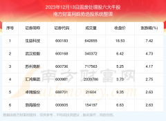 截止2023年12月13日,个股表现方面,长江经济带上市公司当日领涨股为湖南发展(000722),该股当日报收10.75,上涨10.03%,成交量27.34万。武汉控股(600168)以上涨4.73%紧随其后,该股当日成交量...