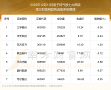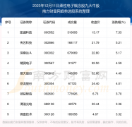 截止2023年12月11日,个股表现方面,柔性电子概念股当日领涨股为凯盛科技(600552),该股当日报收13.17,上涨7.33%,成交量31.67万。传艺科技(002866)以上涨5.21%紧随其后,该股当日成交量16.81万...