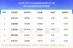 截止2023年12月11日,个股表现方面,出版商概念股票当日领涨股为世纪天鸿(300654),该股当日报收14.96,上涨19.97%,成交量79.41万。出版传媒(601999)以上涨10.06%紧随其后,该股当日成交量67.0...