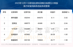 截止2023年12月11日,个股表现方面,新冠抗原检测概念股票当日领跌股为美年健康(002044),该股当日报收6.11,上涨-3.02%,成交量84.64万。亚辉龙(688575)以下跌-2.64%紧随其后,该股当日成交量...