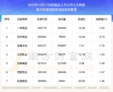 截止2023年12月11日,个股表现方面,奶制品上市公司当日领跌股为一鸣食品(605179),该股当日报收15.48,上涨-7.03%,成交量35.47万。佳禾食品(605300)以下跌-3.74%紧随其后,该股当日成交量7.96万...