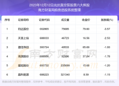 截止2023年12月12日,个股表现方面,贵金属概念股票当日领跌股为天合光能(688599),该股当日报收25.93,上涨-1.41%,成交量12.03万。国城矿业(000688)以下跌-1.38%紧随其后,该股当日成交量3.42万...
