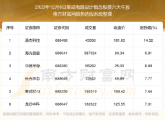 截止2023年12月8日,个股表现方面,集成电路设计概念股票当日领涨股为源杰科技(688498),该股当日报收181.63,上涨14.32%,成交量4.36万。海光信息(688041)以上涨9.81%紧随其后,该股当日成交量...
