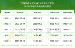 一、万通智控(300643)股票分红记录 万通智控最新一次公布的分红方案:10派1.18元。 本次权益分派股权登记日为2023年6月14日,除权除息日为2023年6月15日,派息日为2023年6月15日...