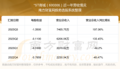 一、*ST商城(600306)股票营收情况 A股上市公司*ST商城(代码:600306)发布2023年第三季度财报,公司2023年第三季度归属于上市公司股东的净利润为-3.13亿元,净利润同比增长-1303.47%,...