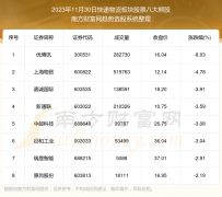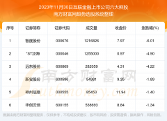 截止2023年11月30日,个股表现方面,互联金融上市公司当日领跌股为智度股份(000676),该股当日报收7.97,上涨-6.01%,成交量121.68万。*ST泛海(000046)以下跌-4.90%紧随其后,该股当日成交量125....