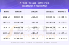 一、合力科技(603917)股票分红记录 合力科技最新一次公布的分红方案:10派1.3元。 本次权益分派股权登记日为2023年5月25日,除权除息日为2023年5月26日,派息日为2023年5月26日。...