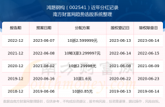 正规配资平台 鸿路钢构002541近年分红情况