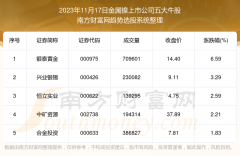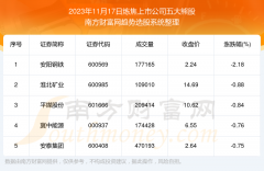 截止2023年11月17日,个股表现方面,金属镍上市公司当日领涨股为银泰黄金(000975),该股当日报收14.40,上涨6.59%,成交量70.96万。兴业银锡(000426)以上涨3.29%紧随其后,该股当日成交量23.01万...