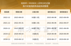 一、桂发祥(002820)股票分红记录 桂发祥最新一次公布的分红方案为10派1.5元。本次权益分派股权登记日为2023年6月8日,除权除息日为2023年6月9日,派息日为2023年6月9日。 近年桂...