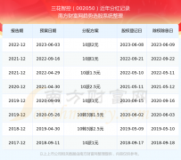 一、三花智控(002050)股票分红记录 三花智控最新一次公布的分红方案为10派2元。本次权益分派股权登记日为2023年6月8日,除权除息日为2023年6月9日,派息日为2023年6月9日。 近...