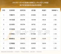 截止2023年11月14日,个股表现方面,氢氧化锂概念上市公司当日领跌股为宁德时代(300750),该股当日报收183.68,上涨-2.22%,成交量23.49万。中矿资源(002738)以下跌-1.53%紧随其后,该股当日成交...