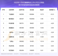 截止2023年11月9日,个股表现方面,麒麟电池上市公司当日领跌股为飞龙股份(002536),该股当日报收15.73,上涨-10.01%,成交量63.07万。银邦股份(300337)以下跌-9.74%紧随其后,该股当日成交量1...