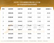 截止2023年11月8日,个股表现方面,甲流概念股当日领涨股为热景生物(688068),该股当日报收51.54,上涨20.00%,成交量15.12万。太龙药业(600222)以上涨10.07%紧随其后,该股当日成交量99.94万。此...