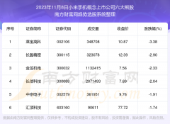 截止2023年11月8日,个股表现方面,小米手机概念上市公司当日领跌股为莱宝高科(002106),该股当日报收10.87,上涨-3.38%,成交量34.87万。长盈精密(300115)以下跌-2.90%紧随其后,该股当日成交量...